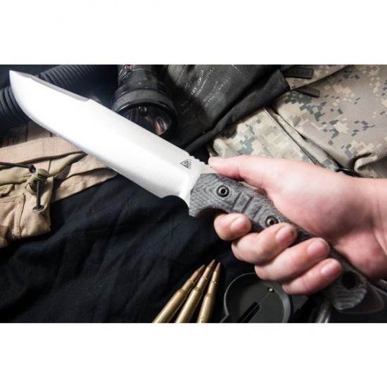 MKB-9はバークリバーとF.O.B.O.S.とのコラボレーションです。F.O.B.O.S.のラインナップの中でも特にヒットしているモデルです。MKB-9のブレードは前方にバランスがあり、チョッピングなどの重たい仕事のためにデザインされています。ハンドルはF.O.B.O.S.と同じで手に親しみやすい特性です。十分活用できる硬くて確かなグリップは刃の正確なアングルを保証します。特徴的なペルジャンスエッジポイントは貫通しやすい安心さで厚く硬く保たれています。アウトドアでのブッシュクラフトやキャンピング、フィッシングなどあらゆるシーンで活躍できる万能ナイフです。