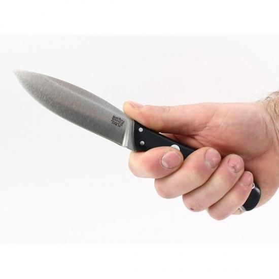 古風なスタイリングは、その根源がボウバック・スキナーズにあり、一般的にカナディアン・スキナーズと呼ばれています。シャロー・フィンガー・グルーヴス・ハンドルは手中でとても安全で、だからといってナイフの持ち方や使い方を制限してしまうことはありません。